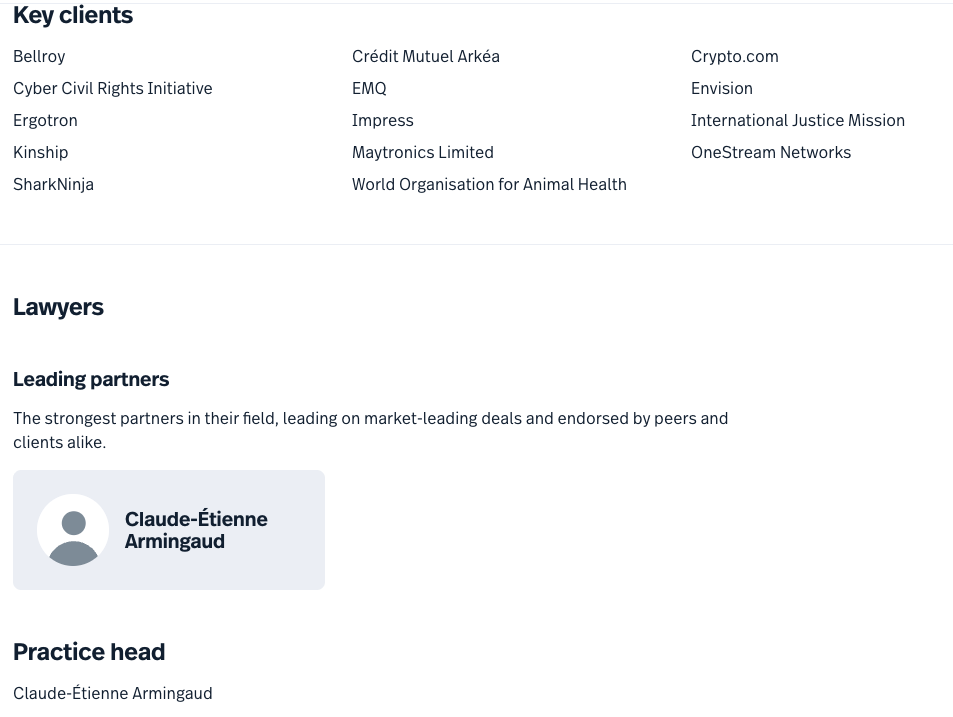 ‘Claude-Étienne Armingaud has an incredible ability to integrate our issues and propose a tailor-made solution, but what sets him apart is his way of communicating with his clients.’