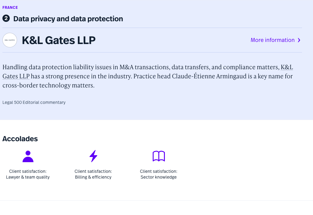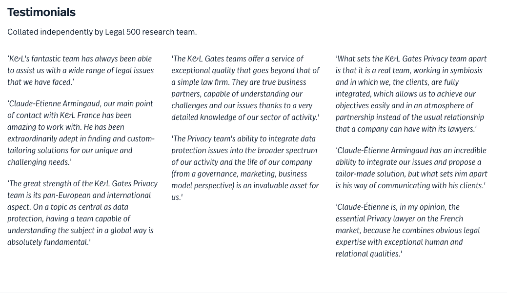 ‘The great strength of the K&L Gates Privacy team is its pan-European and international aspect. On a topic as central as data protection, having a team capable of understanding the subject in a global way is absolutely fundamental.’